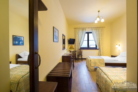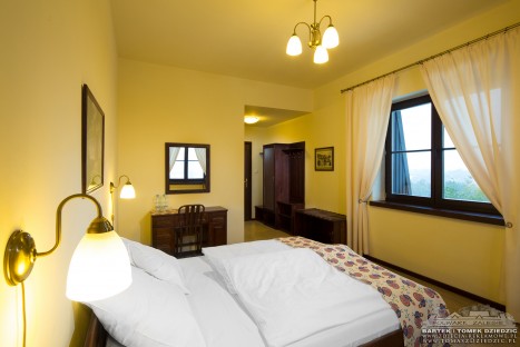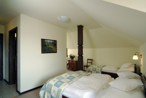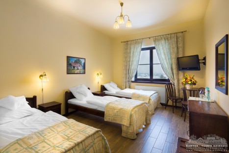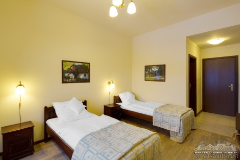 The decoration of the rooms is a traditional Polish one with furniture made out of natural wood. Every room is equipped with a TV set and a bathroom with a shower cubicle. All building has access to the cordless Internet. The windows look onto the neighbouring forests and mountains, e.g. you can enjoy a view of the Tatras and mauntain Babia Gora. A price of a room includes a lavish breakfast.