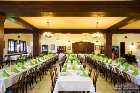 The halls have two external exits - one for a spacious courtyard where the guests are welcomed and the other with a roffed terrace and meadow.