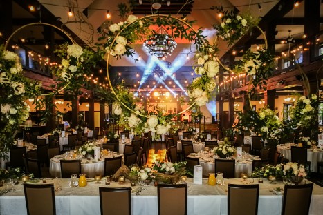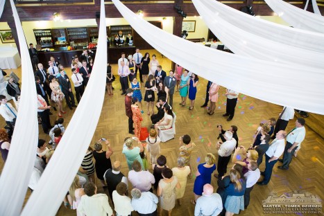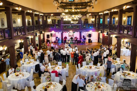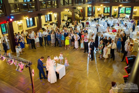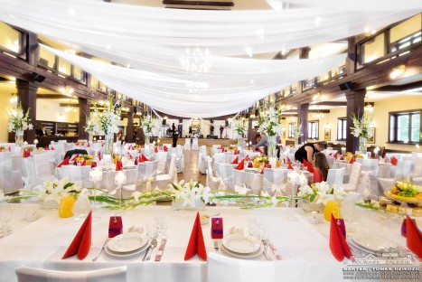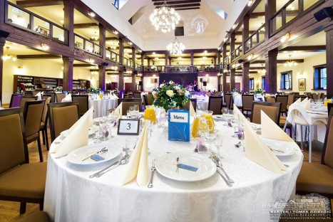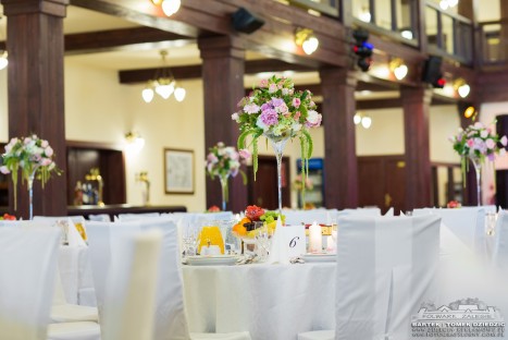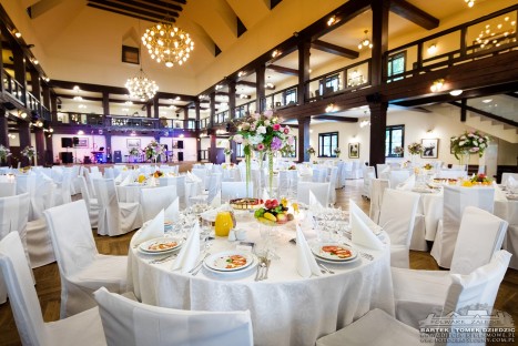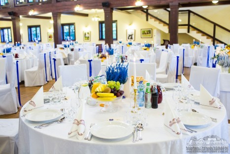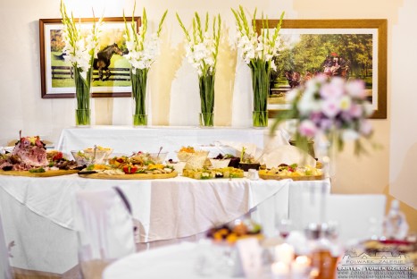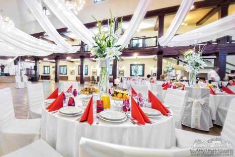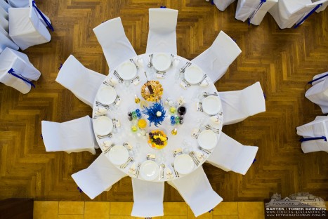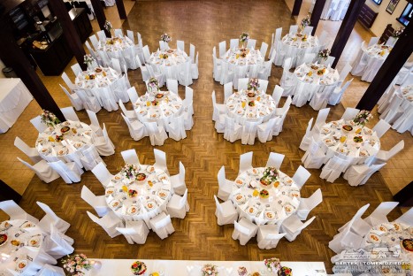 The table setting depends on the number of guests and the client's wishes. We offer round ten-person tables for Guests and a longitudinal presidium for the Bride and Groom.
